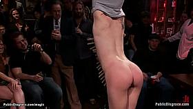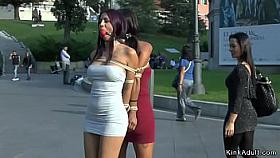 Brunette hot a bit chubby babe walked in leish in public then fucked outdoor