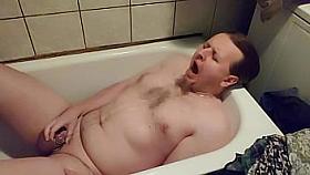 Submissive sissy boy pissing himself in girls panties in the bathtub for Mummy