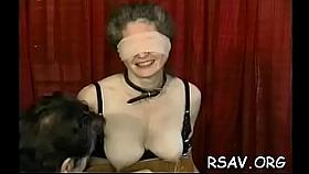 Gorgeous milf woman, Kathy Parker, with natural big boobs. BDSM movie.