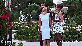 Brunette sub d. in public park